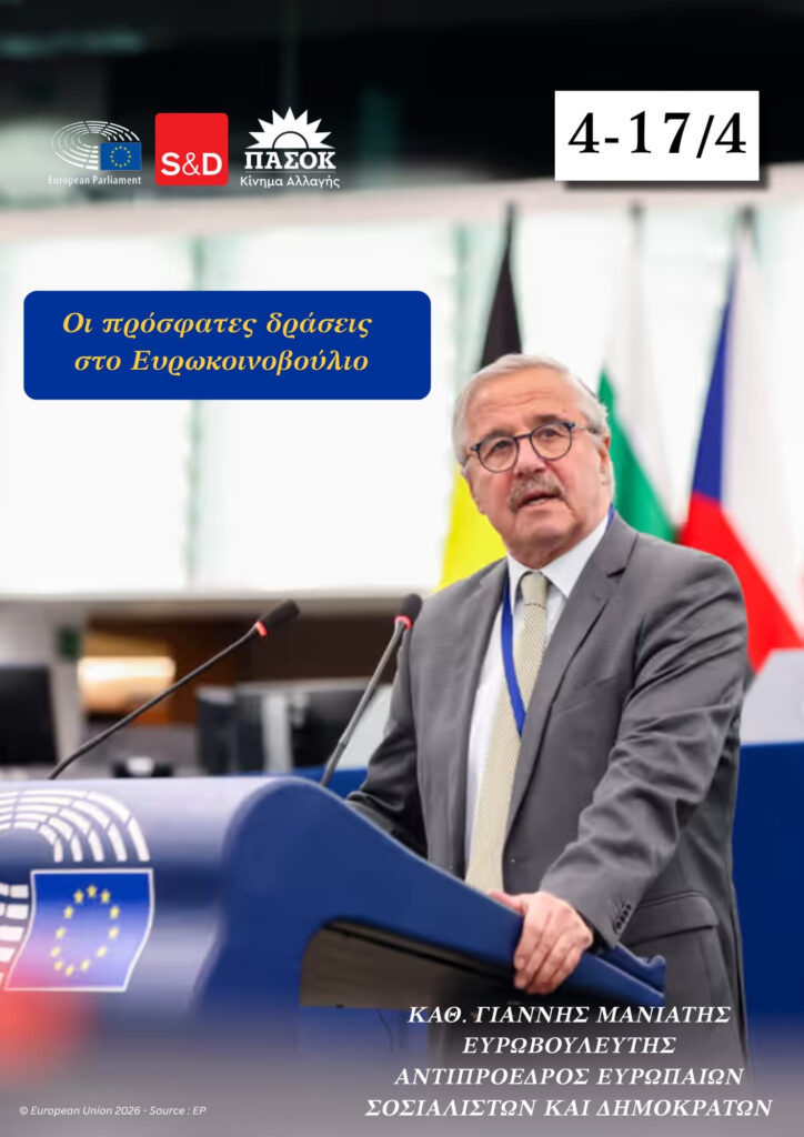 Το θέμα της αντιμετώπισης της κρίσης στον τομέα των λιπασμάτων για την ενίσχυση της επισιτιστικής ασφάλειας στην ΕΕ, αναδεικνύει με ερώτησή του προς την Ευρωπαϊκή Επιτροπή, ο Αντιπρόεδρος της Ομάδας των Ευρωπαίων Σοσιαλιστών και Δημοκρατών (S&D) στο Ευρωπαϊκό Κοινοβούλιο, Καθ. Γιάννης Μανιάτης. Ο ευρωβουλευτής του ΠΑ.ΣΟ.Κ. τονίζει ότι οι συνέπειες της γεωπολιτικής αστάθειας των τελευταίων […]