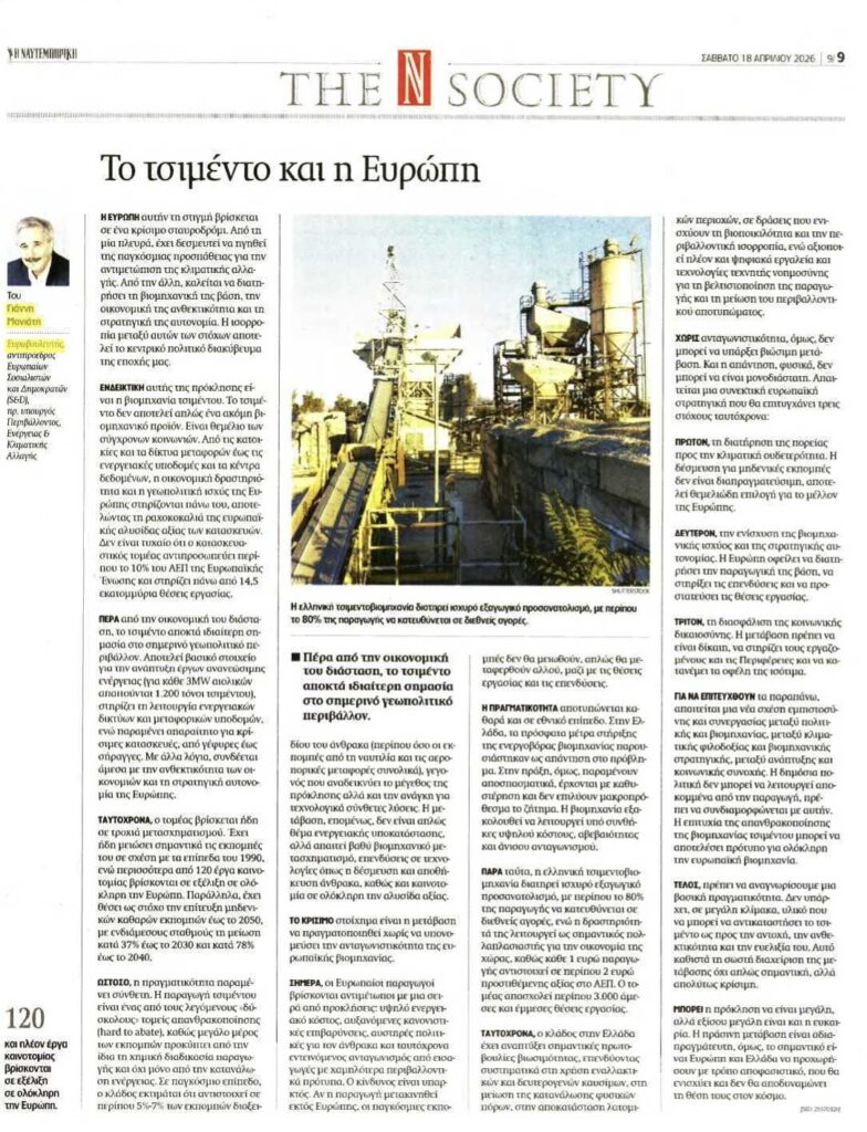 (Στηρίζεται στην ομιλία της εκδήλωσης που συνδιοργανώσαμε με την Cement Europe " Urgent policy actions for Europe’s Cement industry", Ευρωπαϊκό Κοινοβούλιο, 26/03/2026) Η Ευρώπη αυτή τη στιγμή βρίσκεται σε ένα κρίσιμο σταυροδρόμι. Από τη μία πλευρά, έχει δεσμευτεί να ηγηθεί της παγκόσμιας προσπάθειας για την αντιμετώπιση της κλιματικής αλλαγής. Από την άλλη, καλείται να διατηρήσει […]
