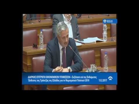 Απάντηση Γ.Στουρνάρα, Διοικητή ΤτΕ, σε ερώτησή μου για το μείγμα πολιτικής της Κυβέρνησης και τα υφεσιακά μέτρα (Βουλή, Επ. Οικονομικών Υποθ., 13.02.2017)