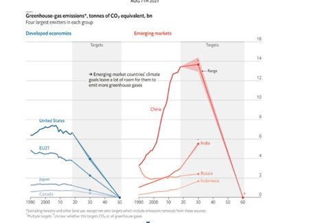 Η Ε.Ε. και οι Η.Π.Α., φιλοδοξούν το 2050 να έχουν ουδέτερο ισοζύγιο άνθρακα, ενώ για το ίδιο έχει δεσμευτεί ο μεγαλύτερος ρυπαντής του κόσμου Κίνα, για το 2060 (πάρα το γεγονός ότι μέχρι το 2035 θα αυξάνει τις εκπομπές – IPCC).