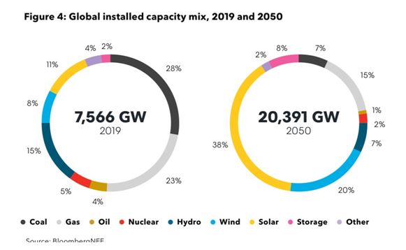 Η σημερινή εγκατεστημένη ισχύς ηλεκτρισμού των 7.566 GW (28% άνθρακα, 23% αέριο, 15%υδροηλεκτρικα, 11% φωτοβολταικά, 8% αιολικά), το 2050 σχεδόν θα έχει τριπλασιαστεί, φθάνοντας τα 20.391 GW, με σχεδόν 60% ανανεώσιμα (38% φωτοβολταικά, 20%αιολικα), 15% αέριο και από 7% το καθένα, υδροηλεκτρικά και άνθρακα).