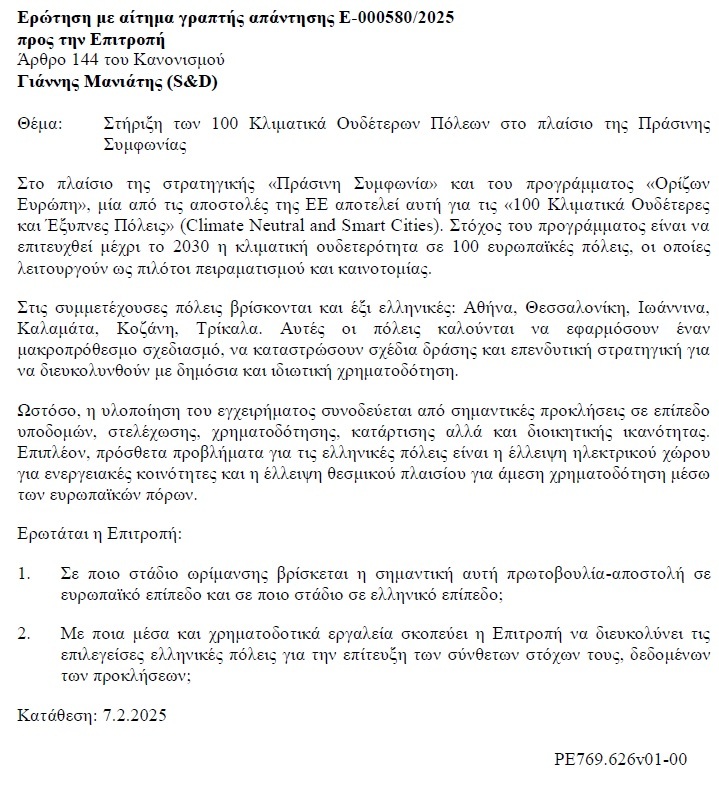 Ακολουθούν το πλήρες κείμενο της Ερώτησης του Ευρωβουλευτή Γ. Μανιάτη και η απάντηση του κ. Jørgensen εξ ονόματος της Ευρωπαϊκής Επιτροπής: