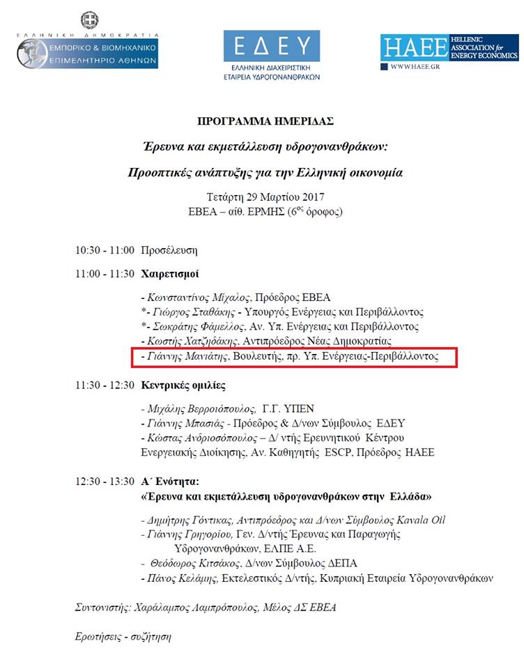 Ομιλία μου στην Ημερίδα ”Έρευνα και Εκμετάλλευση Υδρογονανθράκων: Προοπτικές ανάπτυξης για την Ελληνική οικονομία”
