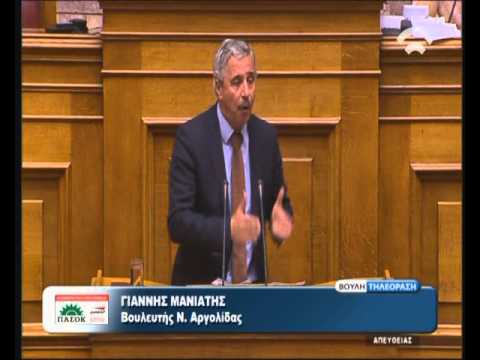 Γ. Μανιάτης: «ΟΧΙ στο Ν/Σ της Κυβέρνησης για τους Αγροτικούς Συνεταιρισμούς» (20.04.2016)