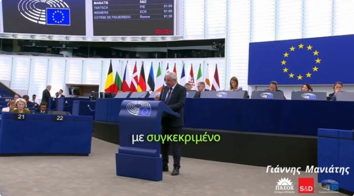 Στη συζήτηση για την Κατάσταση της Ένωσης με την Πρόεδρο της Ευρωπαϊκής Επιτροπής Ursula von der Leyen συμμετείχε ο Αντιπρόεδρος της Ομάδας των Σοσιαλιστών και Επικεφαλής των Ευρωβουλευτών του ΠΑΣΟΚ Γιάννης Μανιάτης.