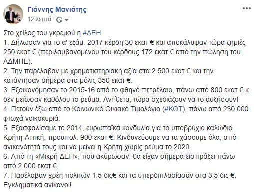 Ανάρτηση Γ. Μανιάτη στα Social Media