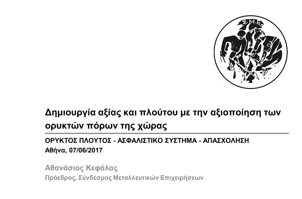 Δείτε εδώ την παρουσίαση του Αθανάσιου Κεφάλα, Προέδρου Συνδέσμου Μεταλλευτικών Επιχειρήσεων (ΣΜΕ).
