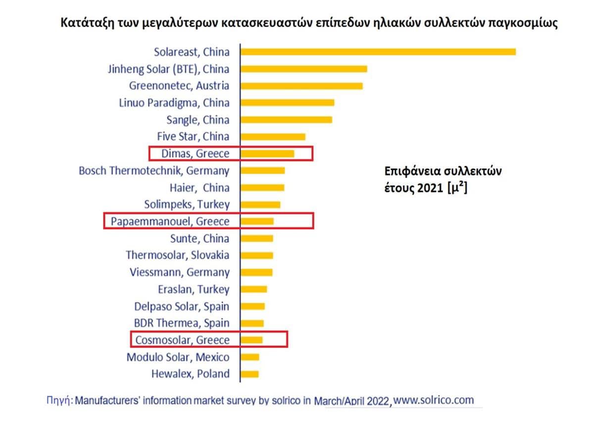Στην ενέργεια, πυλώνας της προσπάθειάς μας, είναι οι 25 Ελληνικές επιχειρήσεις κατασκευής Ηλιακών Θερμοσιφώνων – από τις καλύτερες του κόσμου – με τους 3.000 εργαζομένους, που μειώνουν κατά 30% την οικιακή κατανάλωση ρεύματος και τον αντίστοιχο λογαριασμό του νοικοκυριού.